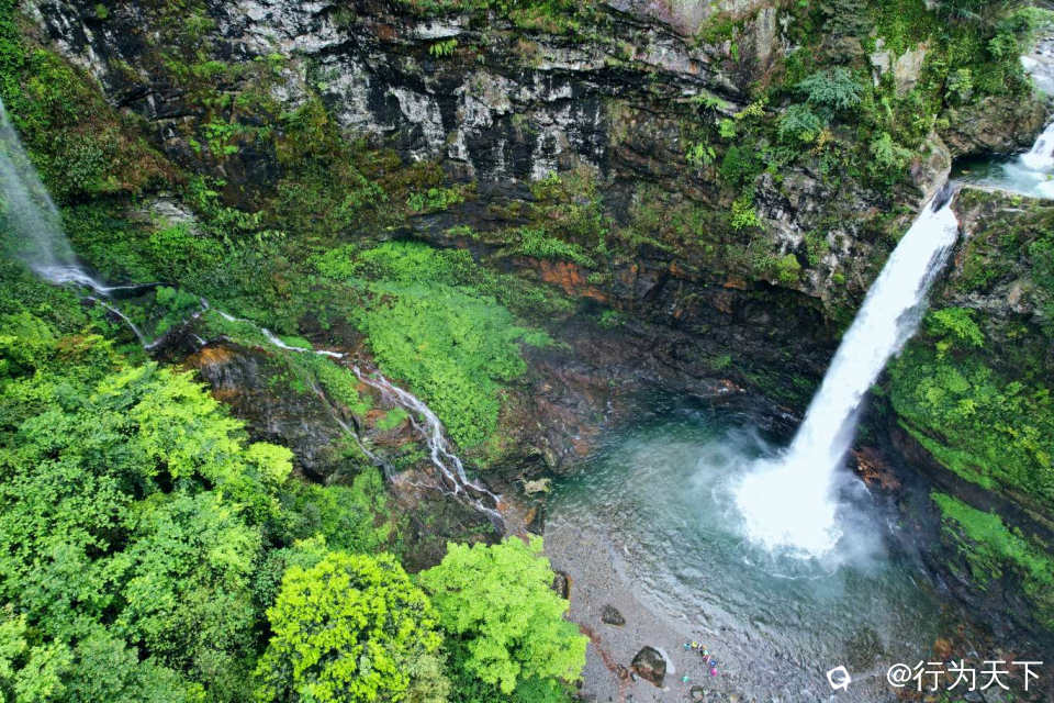 这里地处花坪国家级自然保护区,坐落在笔架河与红滩河的交汇处,四周群山环抱,植被繁茂,珍稀物种遍布,潺潺山泉常年不息,而最引人瞩目的,莫过于那高达50米的红滩瀑布,它以磅礴之势从悬崖顶端倾泻而下,成为这片原始秘境中最壮丽的风景。