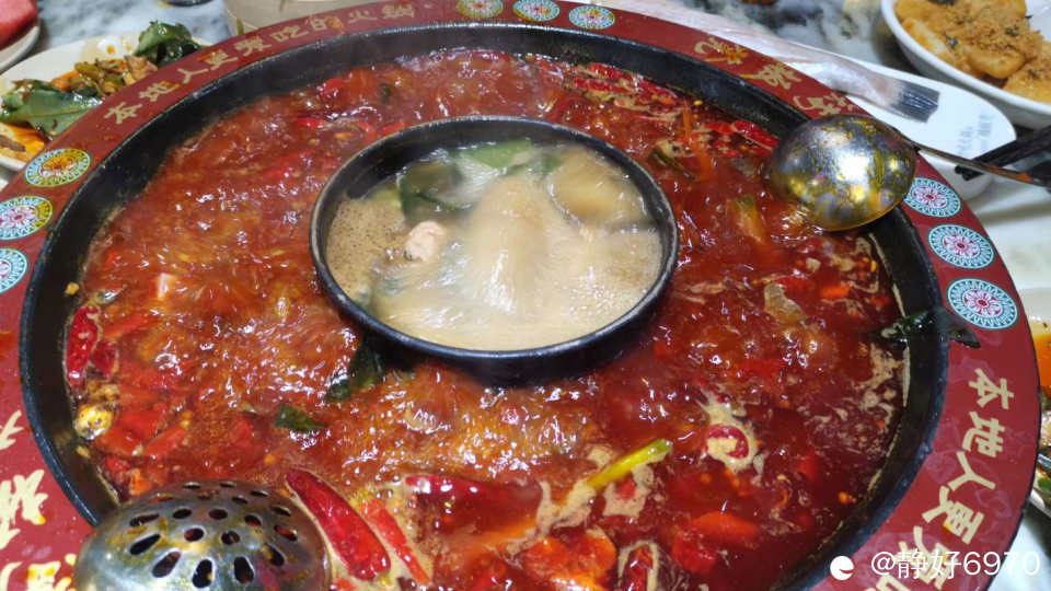 来到四川,口味跟桂林不一样,以麻辣为主,既然来到成都,麻辣火锅肯定少不了,上几张图片让你们看看,全是红彤彤的红辣椒铺成一圈,为了保险起见,还是上了鸳鸯锅,我也先备好了拉肚子的药
