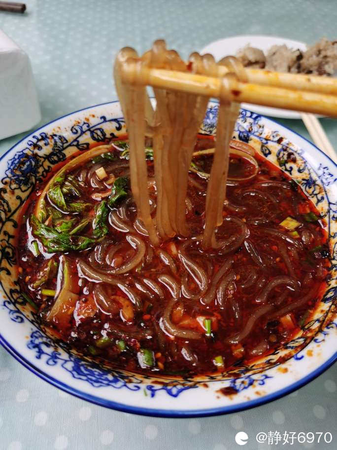 因为提前一天到校,学校食堂还没有开放,只好端着碗走了一条街,也没有找到一家米粉店,这可苦了我这吃着桂林米粉长大的人。这时眼睛一亮,看见一家店写着肥肠红苕粉,也就是我们吃的红薯粉,也行,想到我来成都不是三天,而是几年,没有米粉吃就想办法适应这里的粉和面。