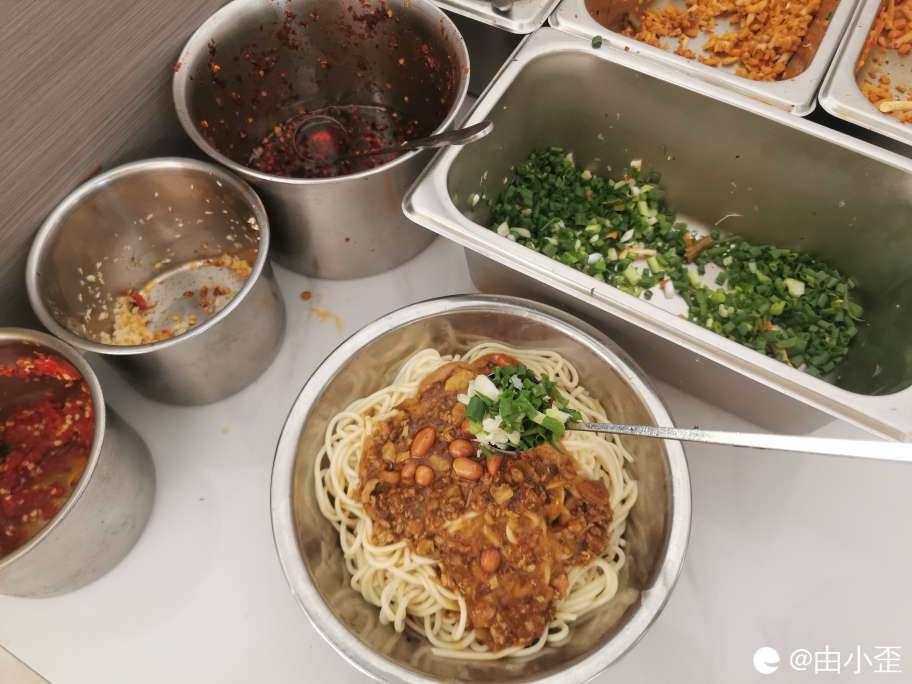 麻辣拌面很快就上来了,调料自取随便放,我们还是比较保守地放料。