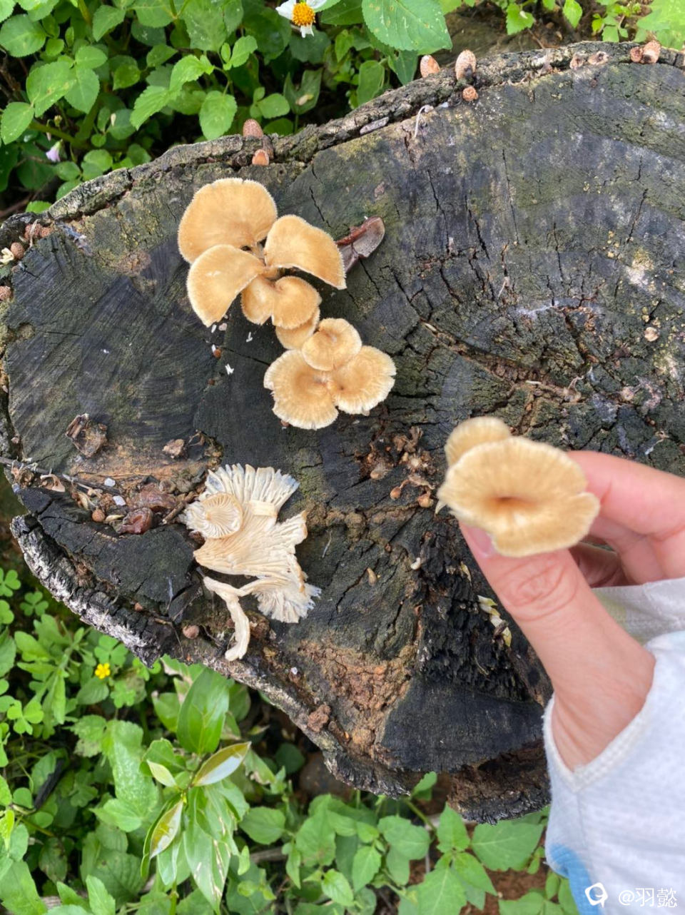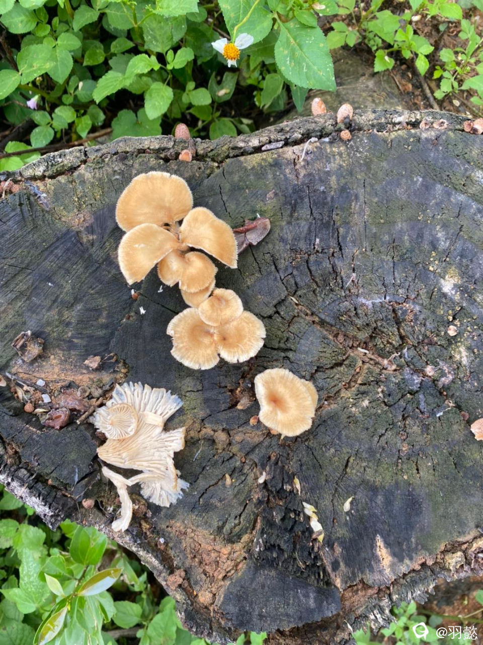 下雨又闷热出太阳的天气最是适合蘑菇生长的季节 到处可见的蘑菇