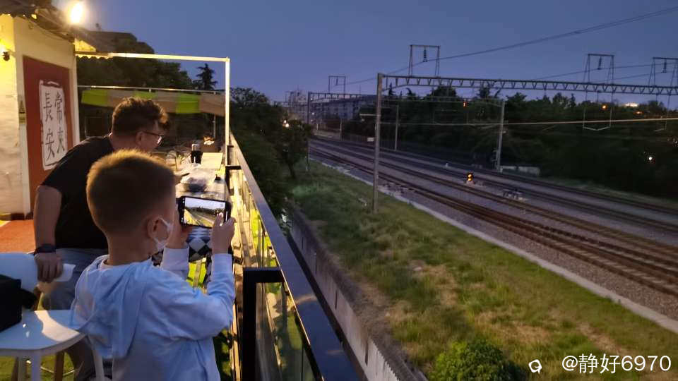 屋顶的平台上坐满了看火车的小朋友,他们早就熟悉什么时候有火车的到来,有个帅小伙厉害,他熟悉火车站的信号灯,只要信号灯变色了,他就赶紧告诉大家,火车要来了,这时不管你正在喝咖啡还是正在吃零食,都会马上放下手中的美食,赶紧把手机打开,做好一切准备,等待火车的到来。