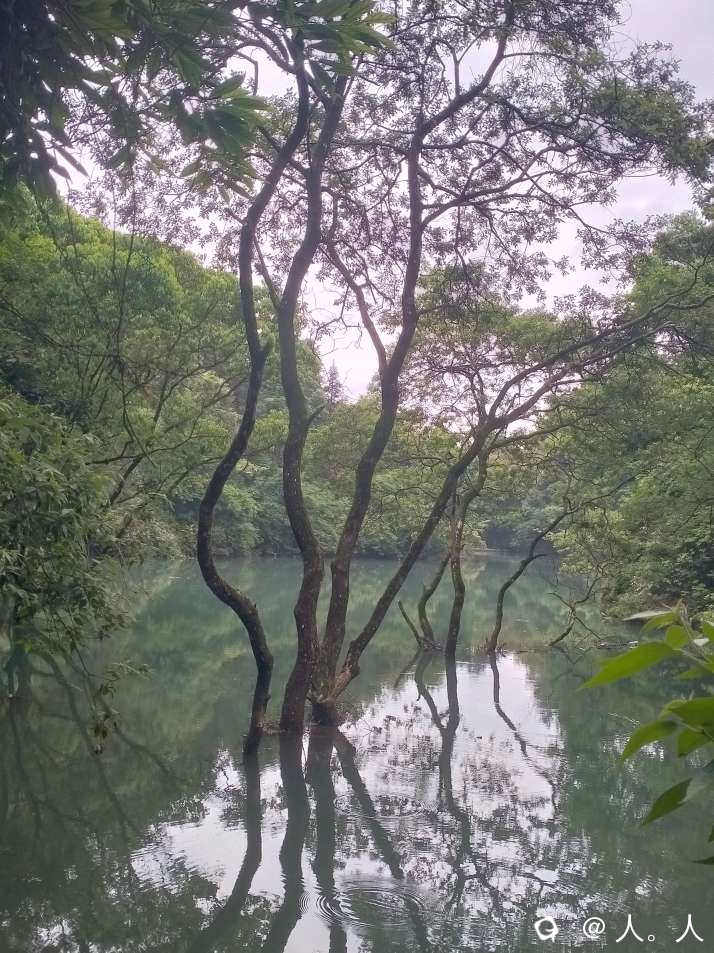 我在小水库边上看到一条小花蛇以垂直姿态在快乐傲游,待我拿出手机准备摄像时,它却了无踪影。