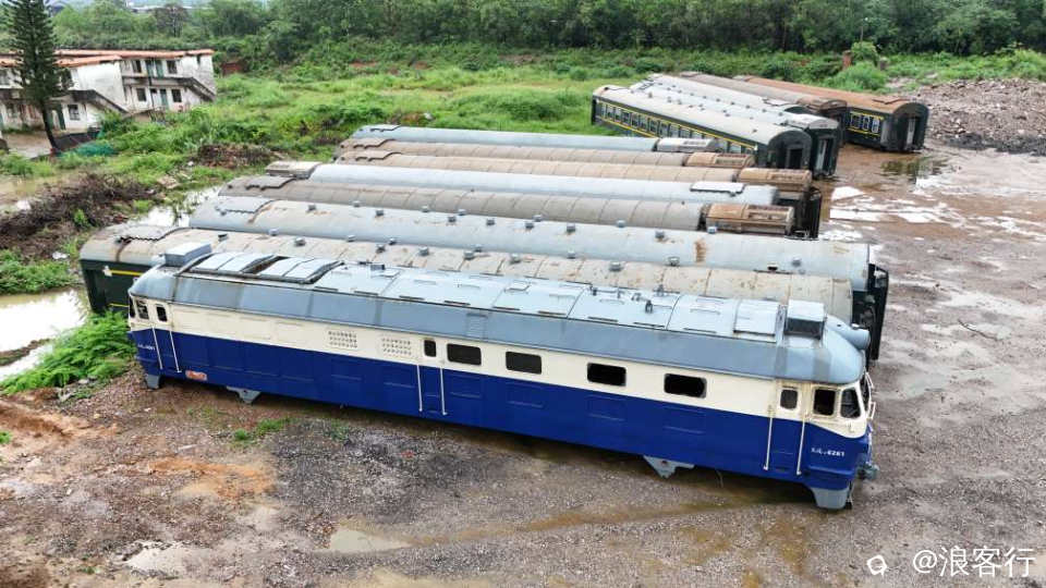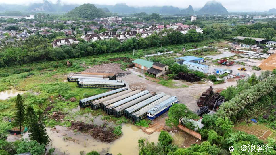 位于桂海线,大圩段的某废弃火车场站,存放十多节废弃绿皮车厢和三台车头,被遗忘在角落,成了“火车坟场”