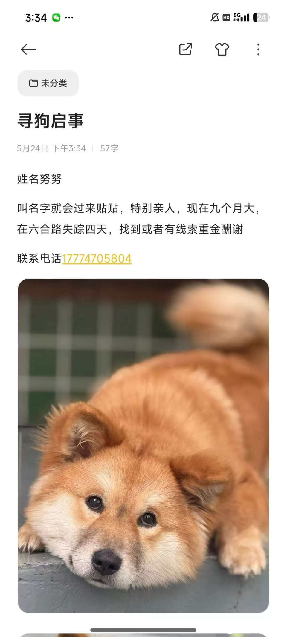 重金寻找宠物2025年5月20日上午走丢如有人帮忙找到或归还 重金酬谢!联系电话:17774705804望爱心人士帮忙拍照转发朋友圈