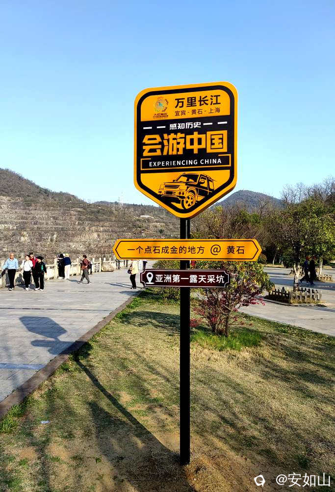 我们阳春三月自驾的第十站是湖北黄石,黄石是一个重要的工业城市,是国家级经济开发区,黄石的矿业开采,始于东汉,历史上一直是重要铜铁原料供给地,也是中国青铜器文化的发祥地,我们的行程是从开封直接到景区,这一路观山探古,在黄石的游览,当然要标新立异