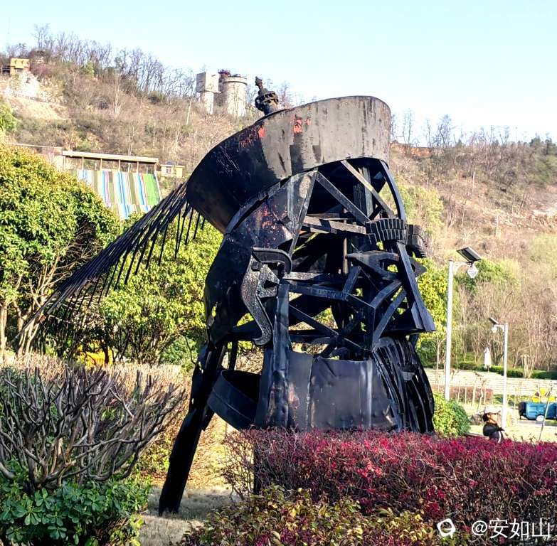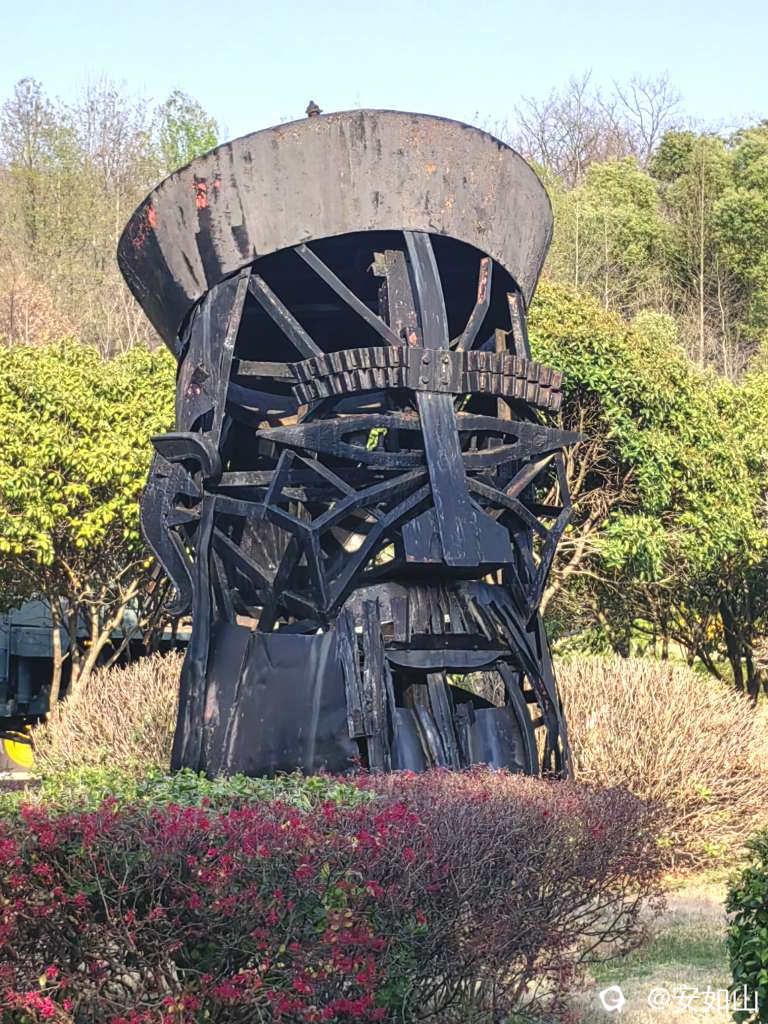 黄石矿山公园里树立着很多旧矿山机械零件组成的钢铁塑像,记载着矿山的历史和沧桑,这尊用废钢材组合成的张之洞塑像合,维妙维肖,颇为传神