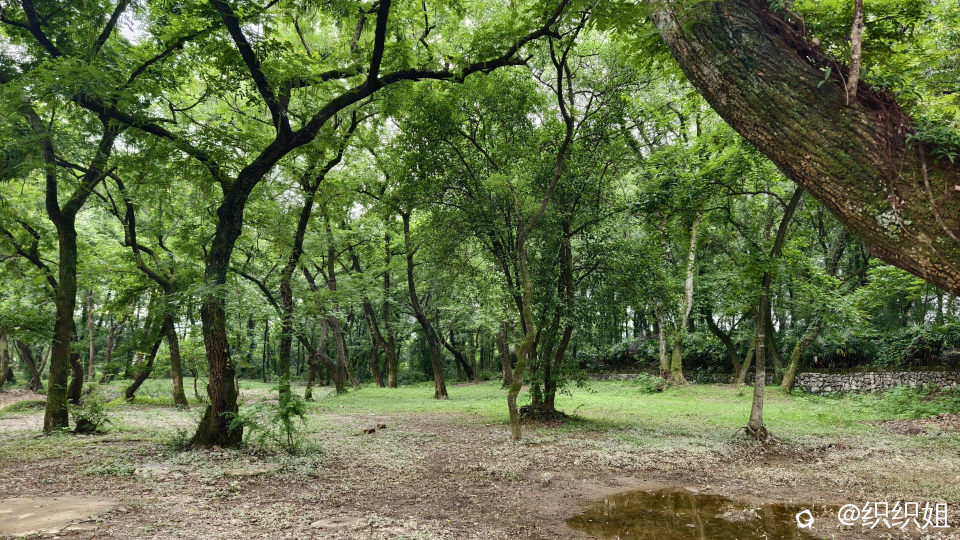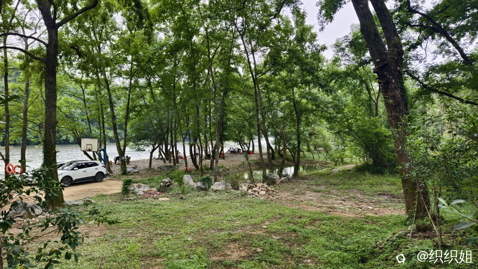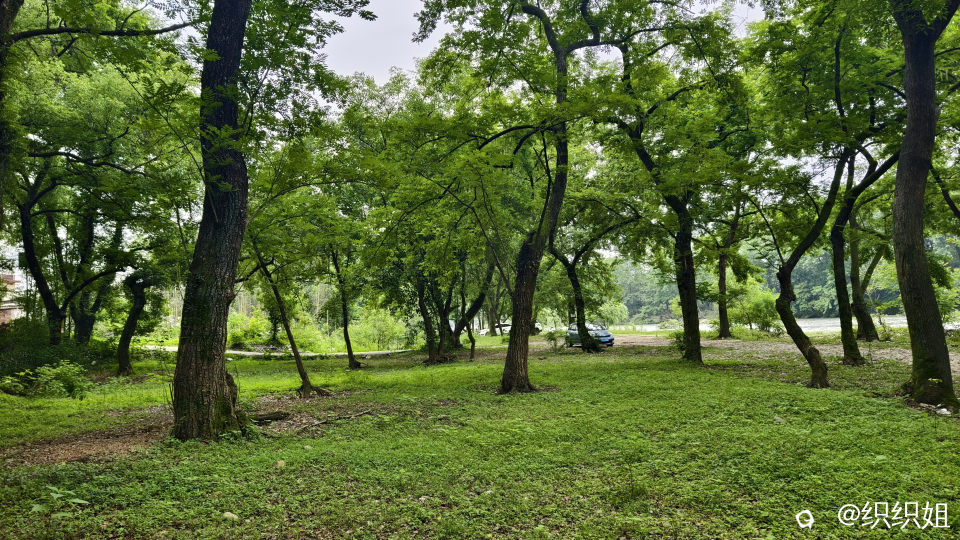 在潭下镇江洲村河边有一片静谧的树林,是夏天避暑休闲的好地方。