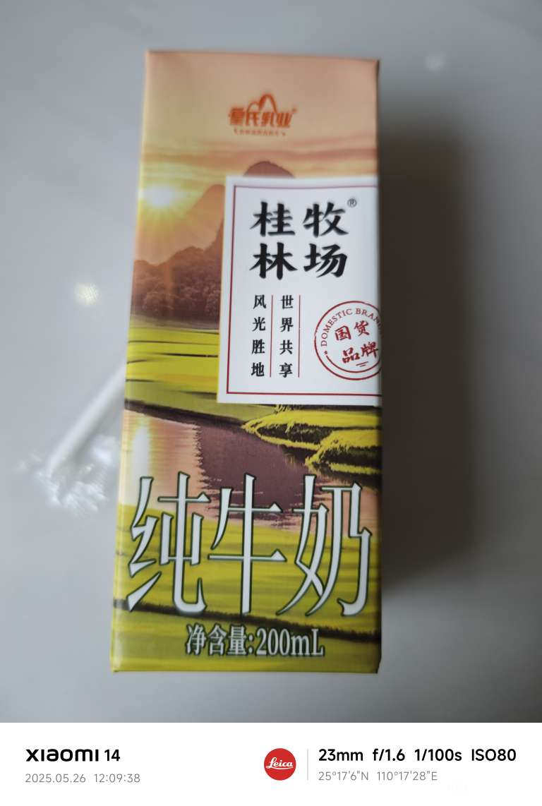 皇氏乳业,桂林牧场 纯牛奶。不知道怎么评价了。不过口味还行。