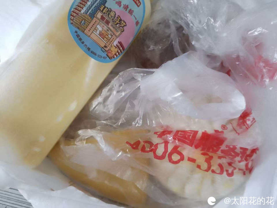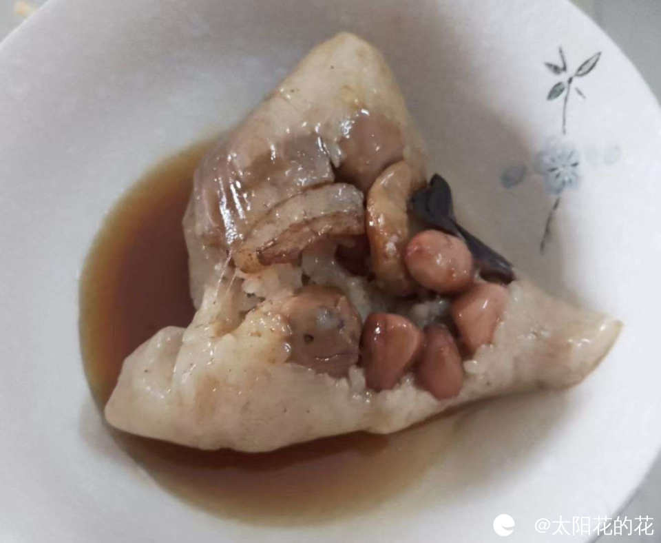 路边小摊买的潮汕口味的粽子,配上糖浆吃,味道很特别……