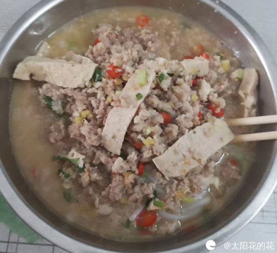 在家吃的早餐:肉末粉……