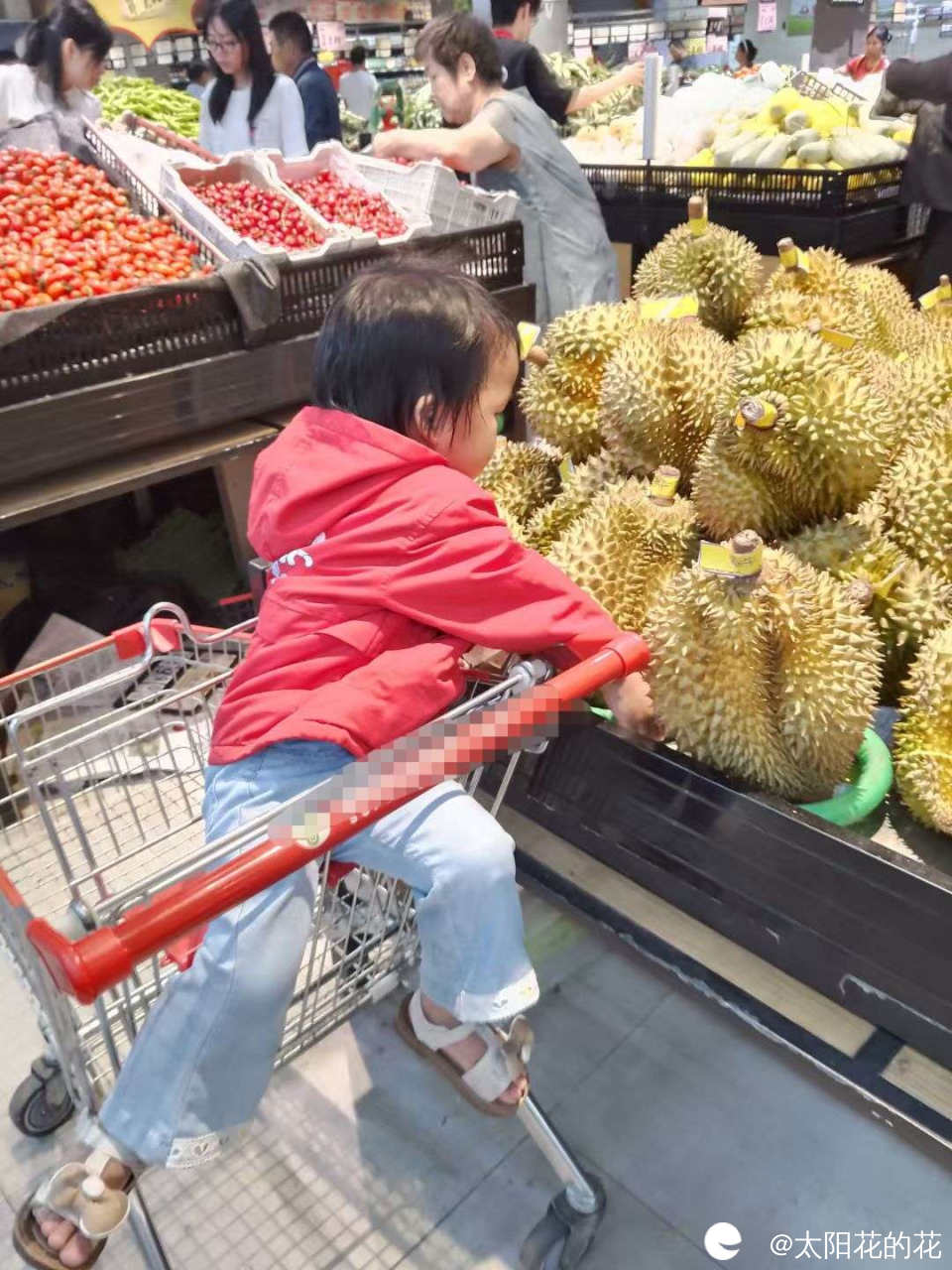 去逛超市买菜,榴莲大量上市的季节到了,超市又有好多榴莲卖……