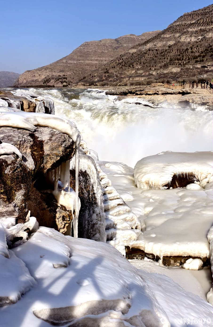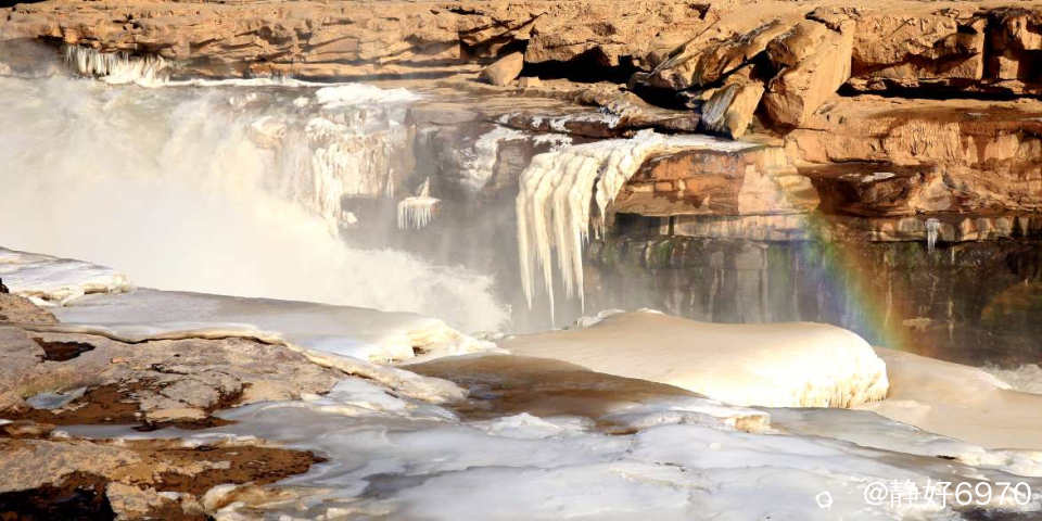 学长向导告诉我,壶口瀑布他来了四次,春夏秋冬都来了,他说冬天更加漂亮,邀请我冬天时再去体会一下千里冰川的感觉!下面的照片是学长提供的!运气好的话还能看到彩虹。