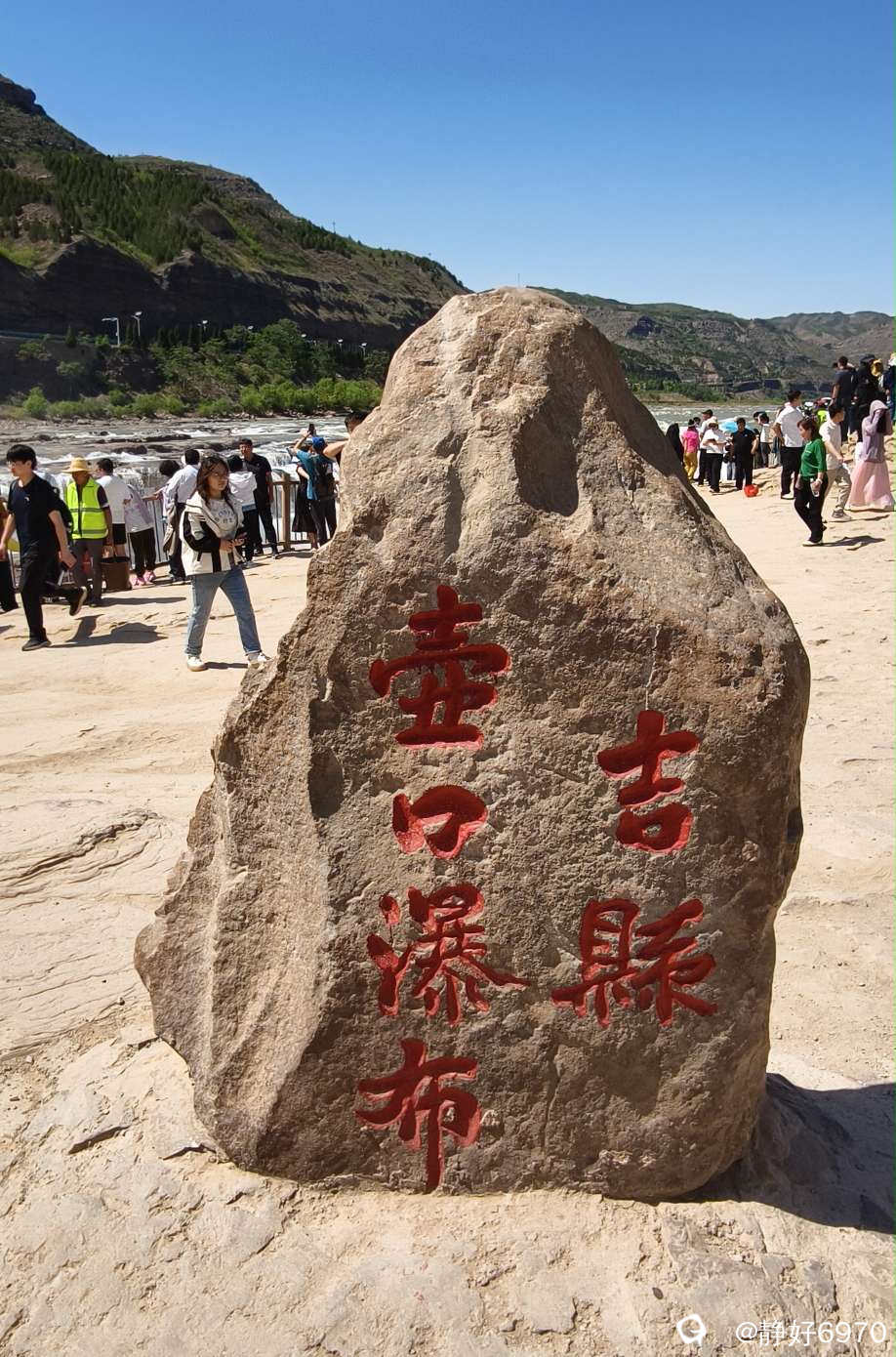 在这石头附近,有个壶口龙洞,因为当天排队的人太多,门票另购20元每人。我就没有去看,听看过的人评价,站在龙洞口看壶口瀑布,真的有种“黄河之水天上来”感觉,因为那里更贴近底部,能感受到浪花拍打到脸上。