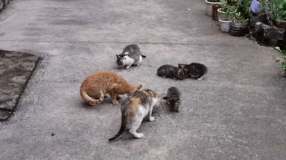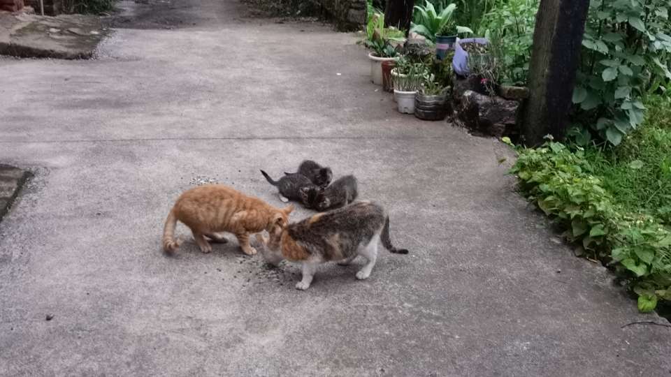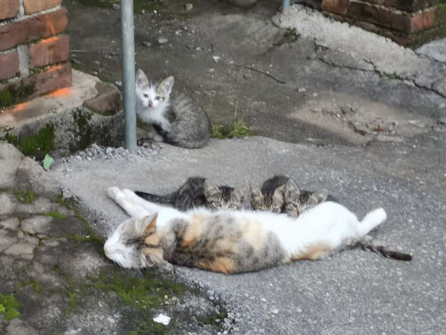 时隔三个月,又回到老家,想不到猫妈妈又添丁了,生了6只小猫,上次生了4只最后全挂了。看见我走过,猫妈妈就一直跟着我要吃的,还好这次带了两大袋猫粮回来。