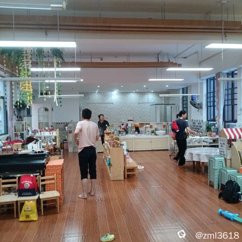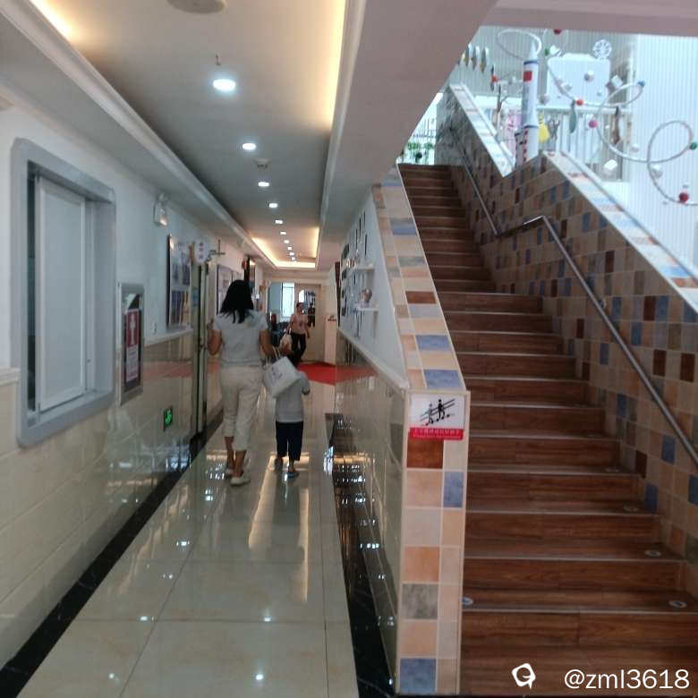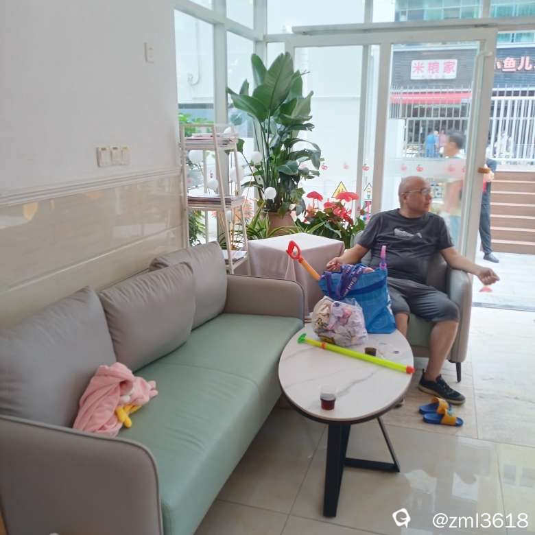 大厅门口有休息沙发,有个娃儿的家长在喝着姜糖水,等娃儿换衣服。