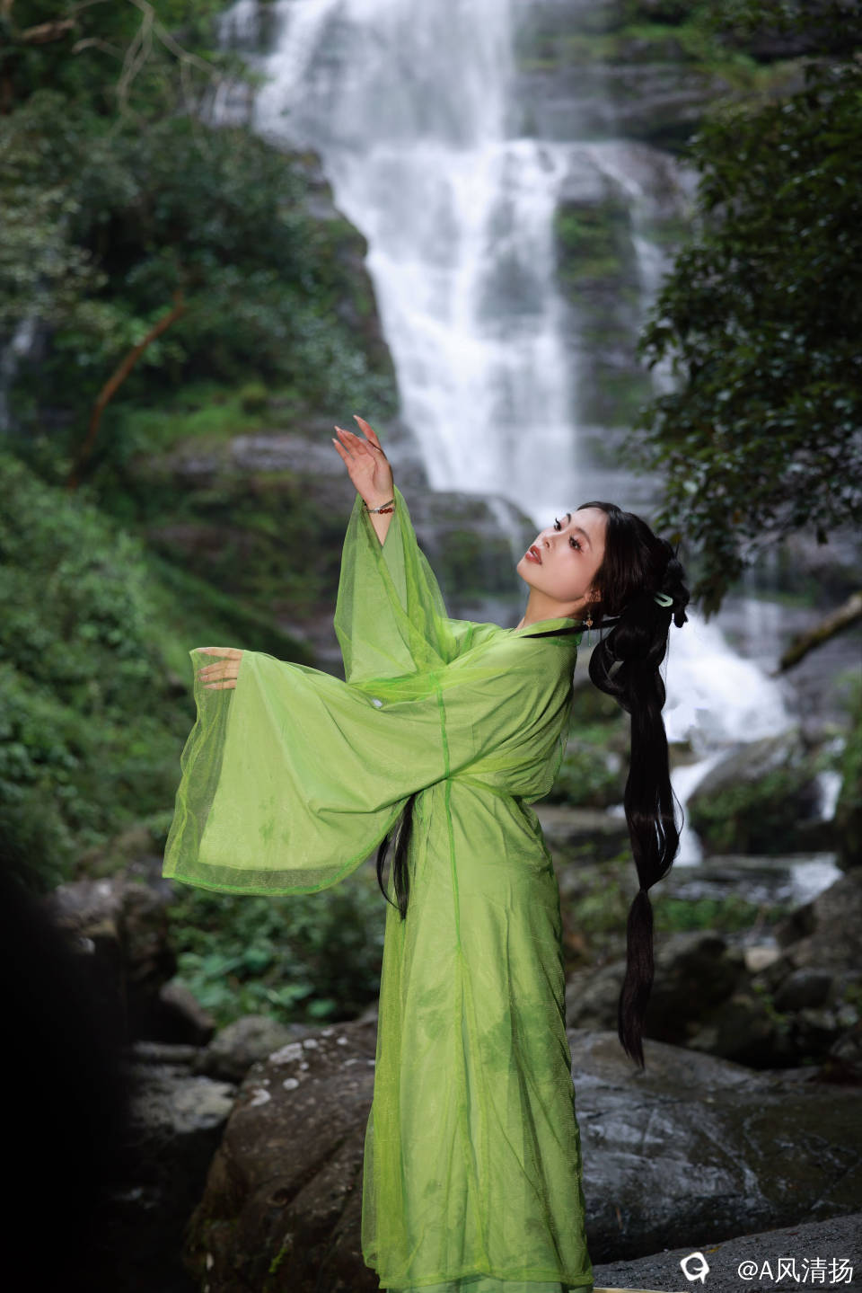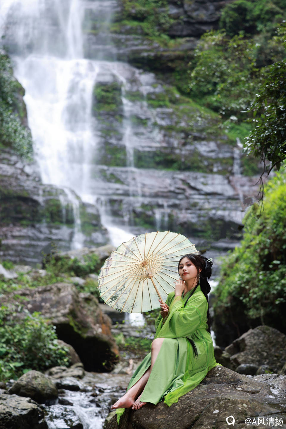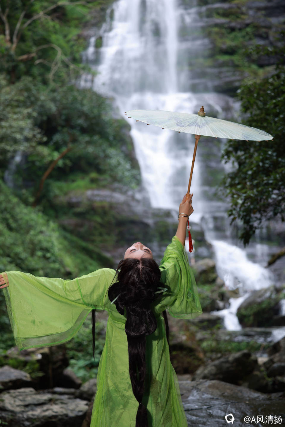 山谷间绿荫环绕,一路溪水潺潺,瀑布清潭别有洞天,疑是银河落九天……