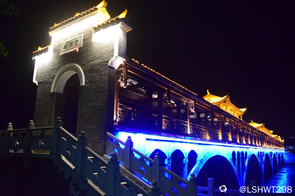 雲津桥,约3年前新建,横跨永明河上,旧桥不知损毁原因及时间,旧址上只留有一拱门(匆忙忘拍),水泥浇注桥体,廊体木梁架构,两侧桥门复古青砖加持,建新如旧。漫步永明河沿江步道,相较于灵川甘棠风雨桥,你认为谁更有韵味。。。