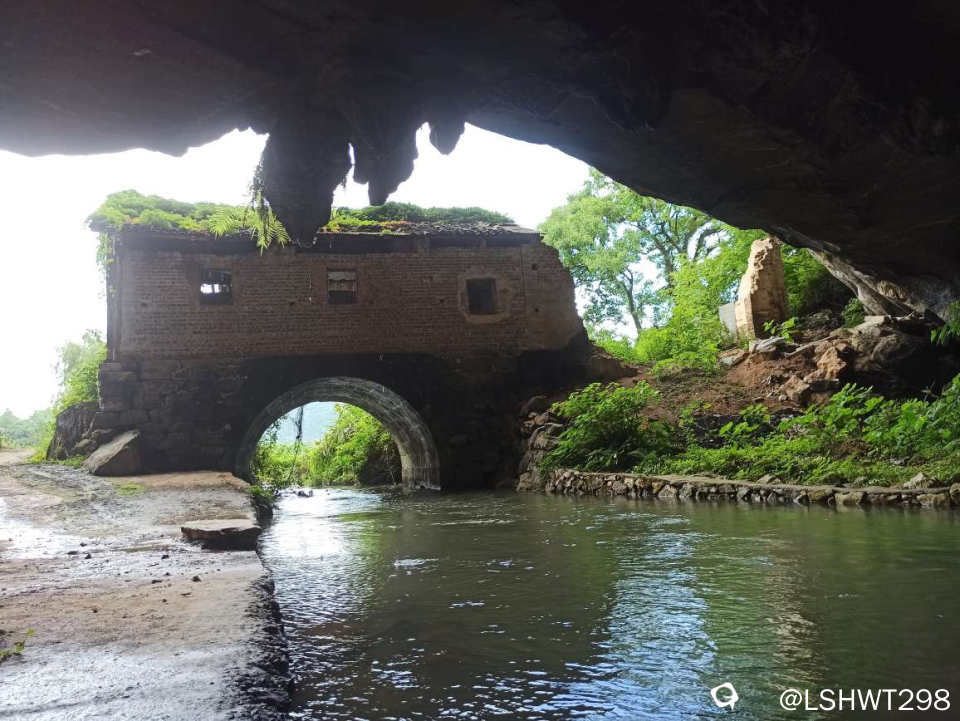 意外偶遇石梁桥、廊桥各一座,山体下方则是一个地下暗河溶洞。操本地口音与当地人交流,得到答复:田间的蓄水满溢后引流汇入暗河,洞内幽暗,深不可测,最终流入广西,至于出水口位置,也不确定。从廊桥碑记上看,最早建于痷寺之类用途,而某段时期改为村办学堂的历史。。。