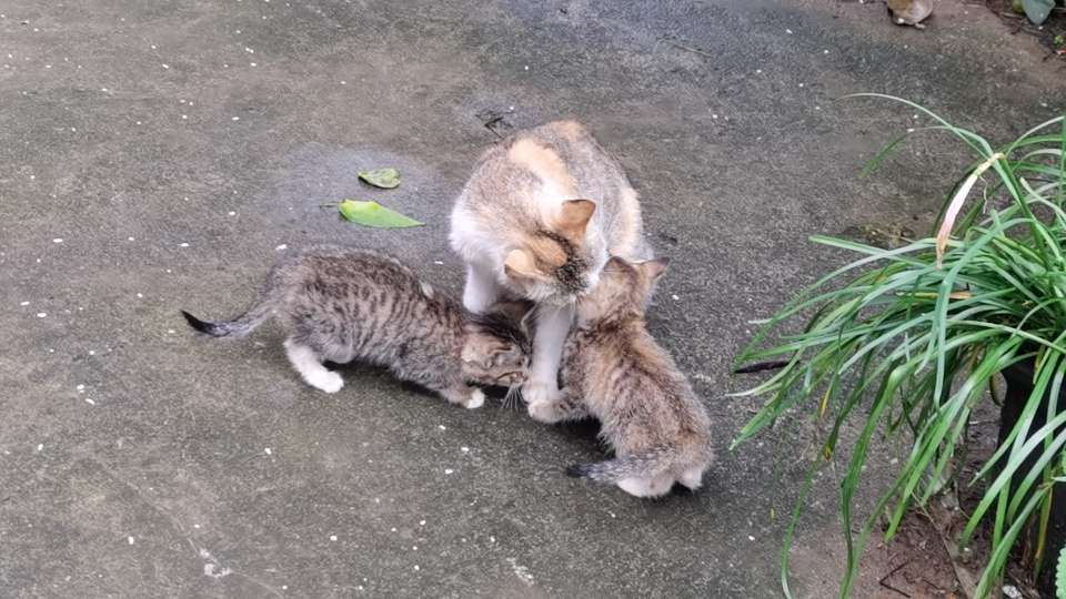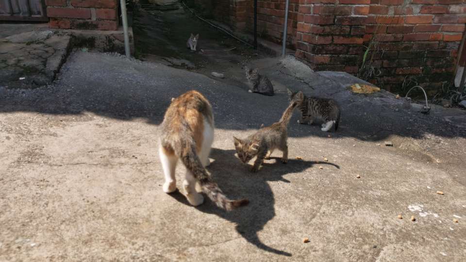 天都黑了,正准备休息了,猫妈妈还拖儿带女的来找我要吃的,没法,只好又喂它们