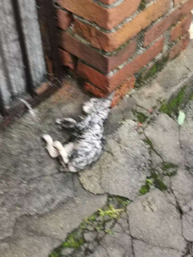 端午节的那天晚上突然狂风暴雨下了一夜。第二天早上醒来见邻居家门口躺着一只浑身湿漉漉的小小猫,当时它有一只脚还在抖,感觉它快不行了。于是我赶紧找来一个纸盒放上旧毛衣毛裤,用毛巾把它包裹着,放进纸盒里面。