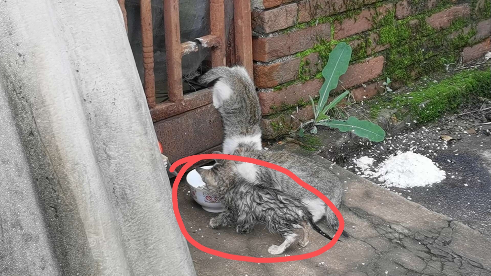 流浪猫能存活下来真的不易,这是下大雨的雨水