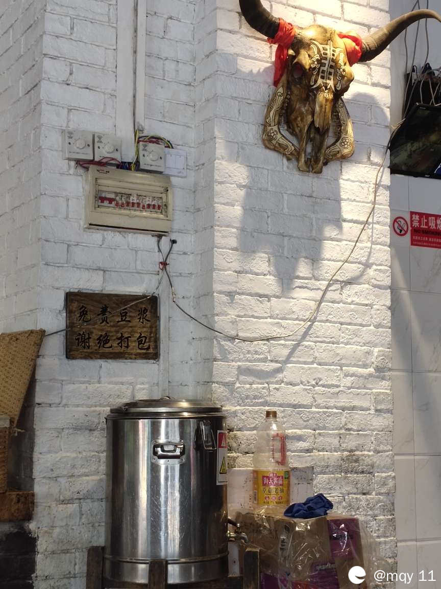 特色的设计,手写的价格牌,青花桌布,大盆特色的配菜,西域的牛头,点点滴滴的装饰,简约之中的复古风,尽显特色。