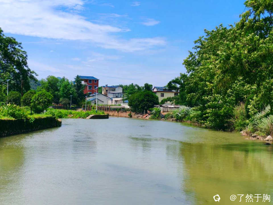 山下,有吕竹水流过,水流不大,但因村民修建了滚水坝,所以也就造就了山水相映,山光水色浑然一体的天然山水画卷。