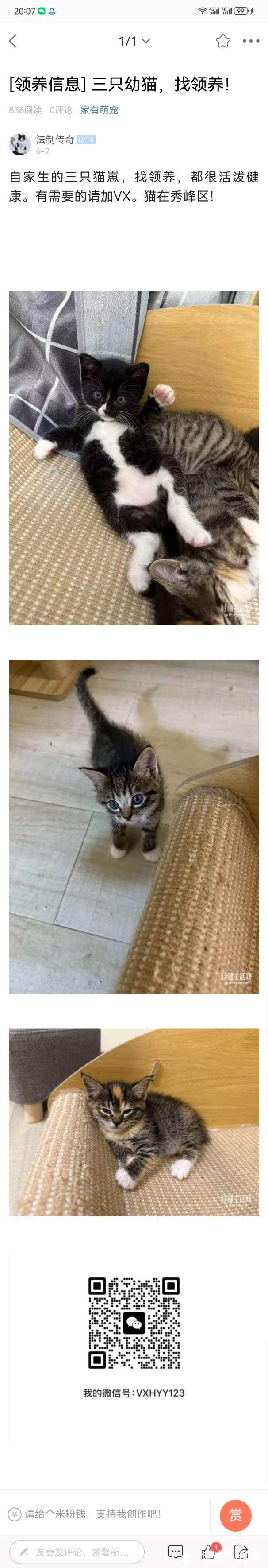 之前发布的领养信息,还有两只小猫没有找到领养,喜欢的请联系主人!