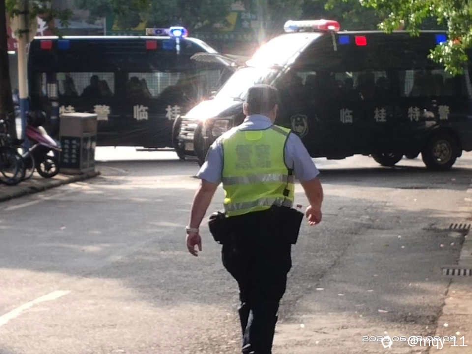 当2025年高考进入了第二天,早上八点10分,一名警察,匆匆忙忙,赶到临桂中学考场门口,与考点工作人员对接,把一张身份证交到工作人员手上。