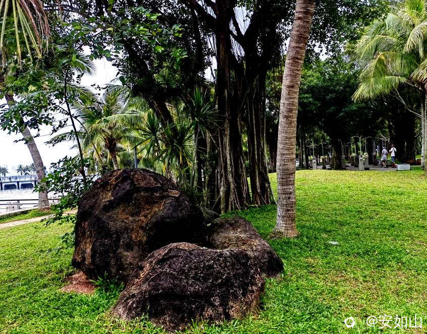 湛江市区里的滨海公园修有很长的观海大堤,园内有游泳场和椰林步道,正值花开时节,鲜花盛开,吹着海风欣赏海岸城市风景,格外舒适怡人