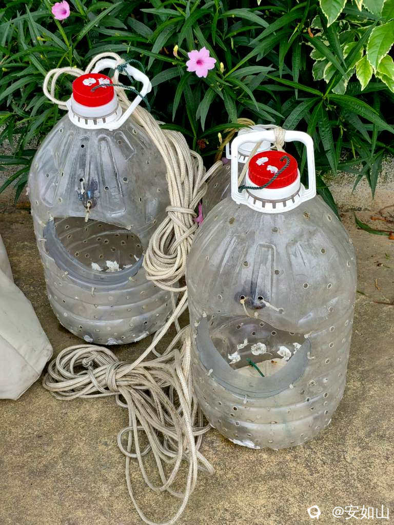 公园里一老头用大号空矿泉水瓶改成捕鱼器,洒一把渔料放在桶里,然后抛到海里,不到三分钟拉上岸,捕鱼器里就捞上来十几条小鱼,一会就捕了一大堆!老头说半天他就能捕十多斤!听着让喜欢钓鱼的我分外眼红!