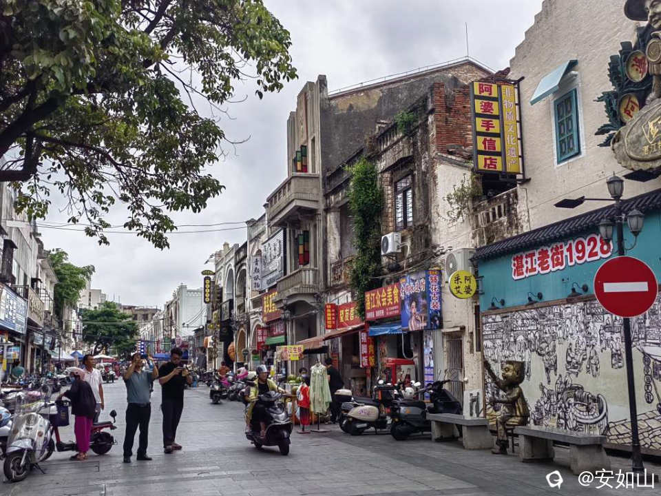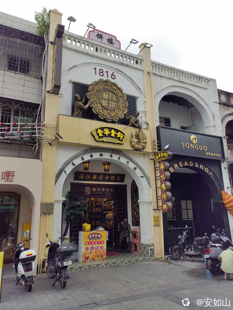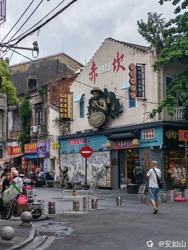 湛江赤坎老街是非常值得去的地方,老街最早始于宋代,历史上是箸名的商埠区和出海口,老建筑大多是江南风格旗楼,由于这里曾经是殖民地,因此也还有一些洋味建筑,走在赤坎老街,人顿时感觉到浓浓的民国味!赤坎老街商铺大多卖的是当地土特产,古董,工艺品,各色饮食,老街博物馆里摆放着旧时的物件和照片,看了让人怀旧,民国建筑我不陌生,我八十年代在桂林中山北路老建筑银行红楼住过几年,那是一栋洋别墅,红色木踏阶镶嵌厚厚的雕花铜板,一条少说就有七八斤,可以换数不清的豆子糖,鸡仔饼!恰巧赤坎一家店铺有卖广东鸡仔饼,我尝了尝,确实是当年的老味道,我即刻买了二大包!
