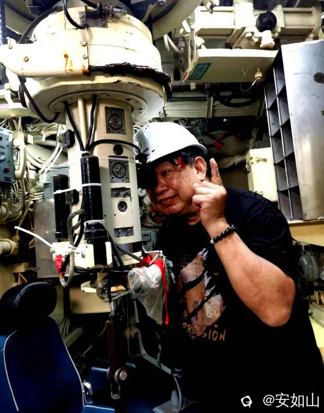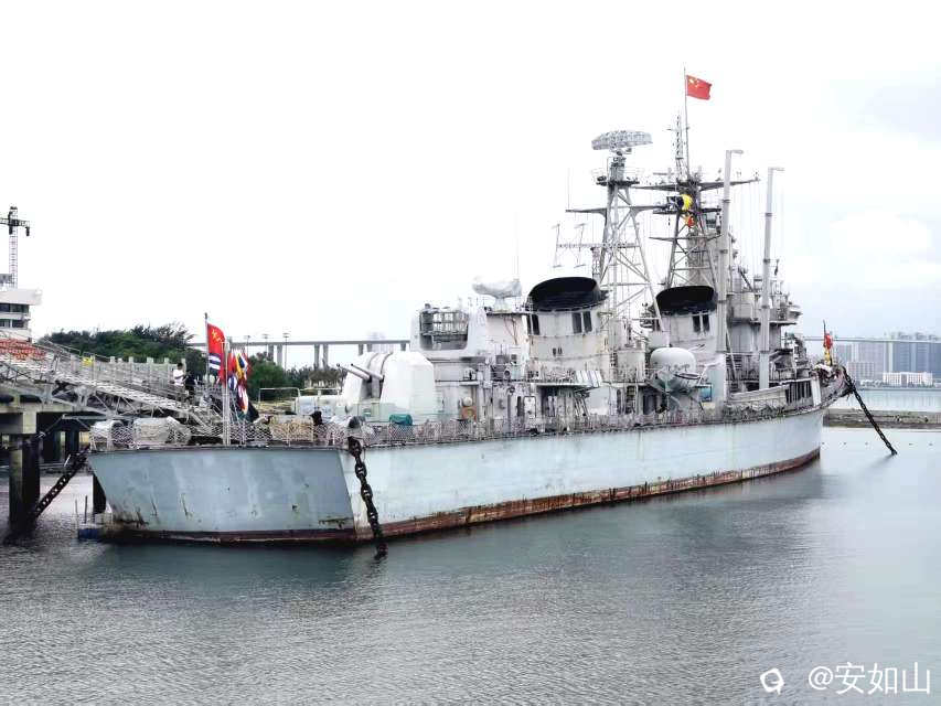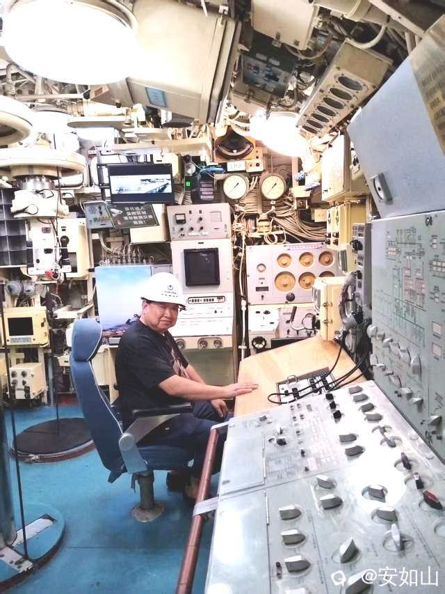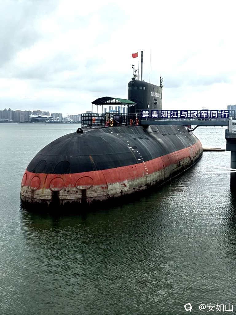 湛江是南海舰队的住扎地和指挥部,在市内海边建有海军军事博物馆,海边停靠着两艘军舰供人参观和科普,我们同车的一位是军迷,因此我们登上了一艘潜艇参观,潜艇好几十米,是一艘苏制基洛级普通动力潜艇,沿着窄小的弦梯我们进入潜艇内部,参观的舰内装备和各个仓室,那天天阴气闷,不一会我就觉得胸闷,全身大汗淋漓,感觉十分难受,我的人生经历工农商学兵都有经历,当兵只干过武装民兵,配过枪,我的枪法极准,但基本上用在打乌上了,我最怕吃苦,因此也当不成兵,但我非常敬佩军人,这艘潜艇很大但舰内能呆人的地方却十分窄小,水兵们要在这窄小的空间中呆上百天,足见其辛苦和要有多坚强的毅志,在这艘潜艇里我们都感到格外兴奋,我通过潜望镜辽望海面,抚摸鱼雷的发射按扭,坐在舰长指挥椅上何等的傲气,那一刻我真以为是舰长了,我拿起报话机发出号令:目标正前方,发射!声音有点歇斯底里,同去的朋友都笑了,他们说:老安中气足,好像有点像舰长!