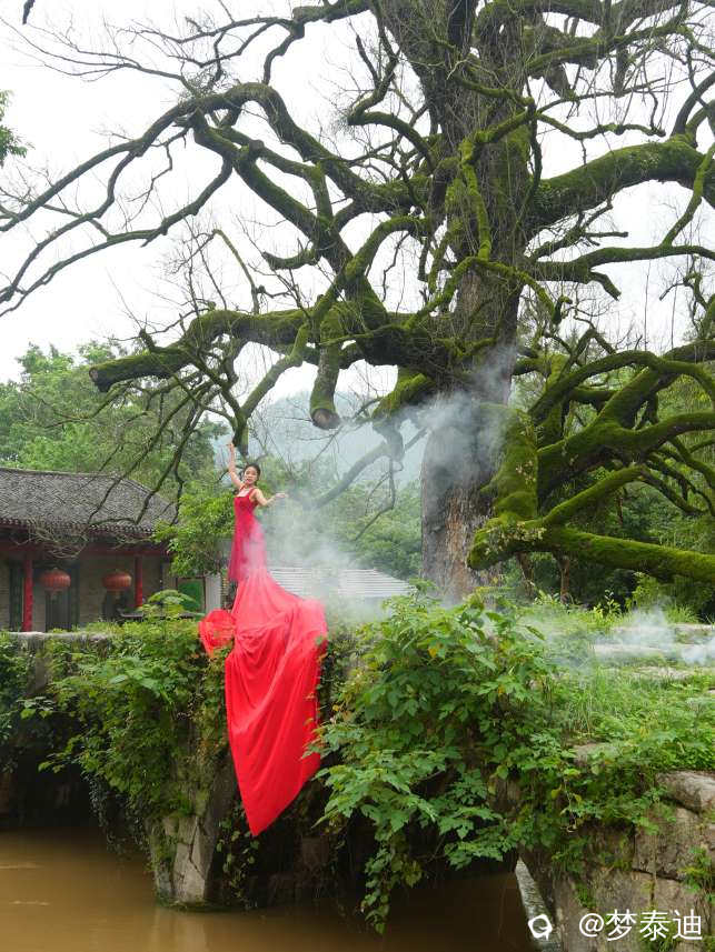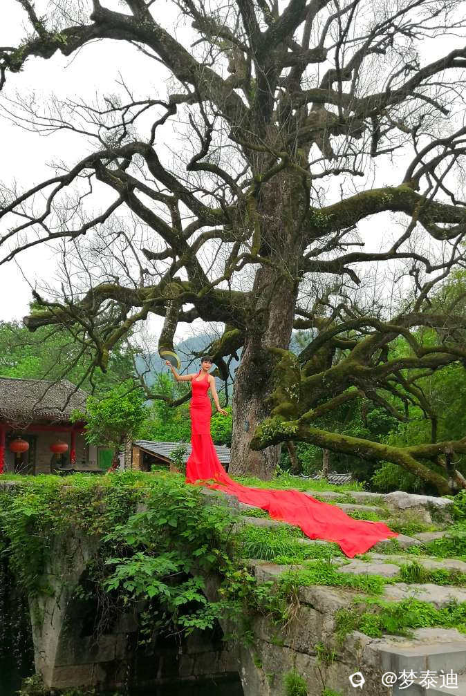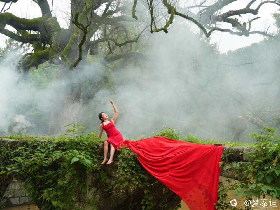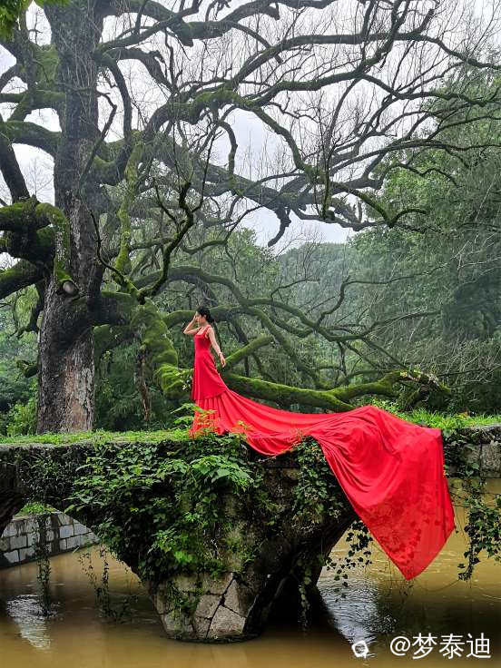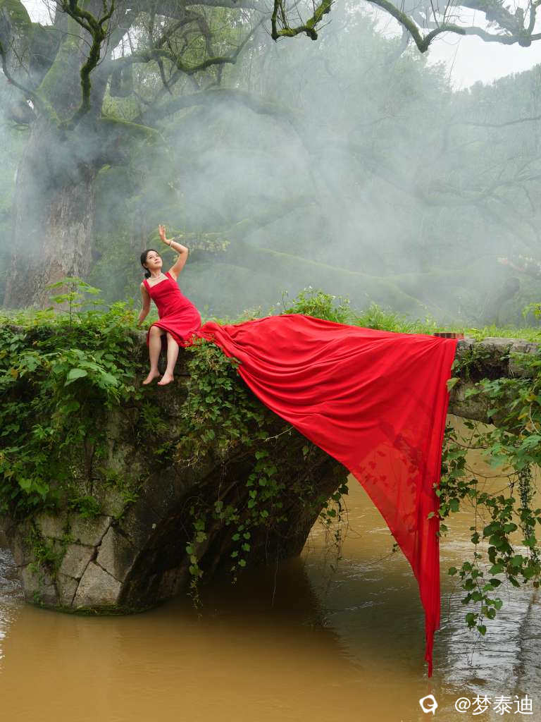 [人像] 赞古桥古树 一袭红裙飘
