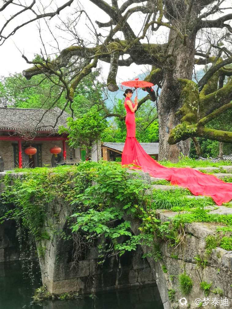 我也喜欢打红伞的感觉,“用古风古韵,表现古树古桥”,所以把它摆在第一张!