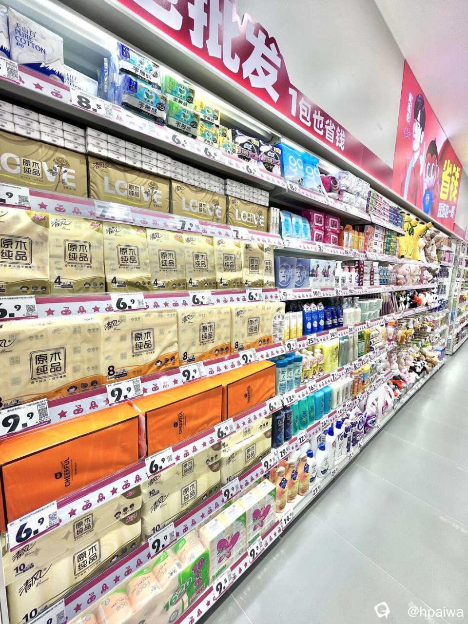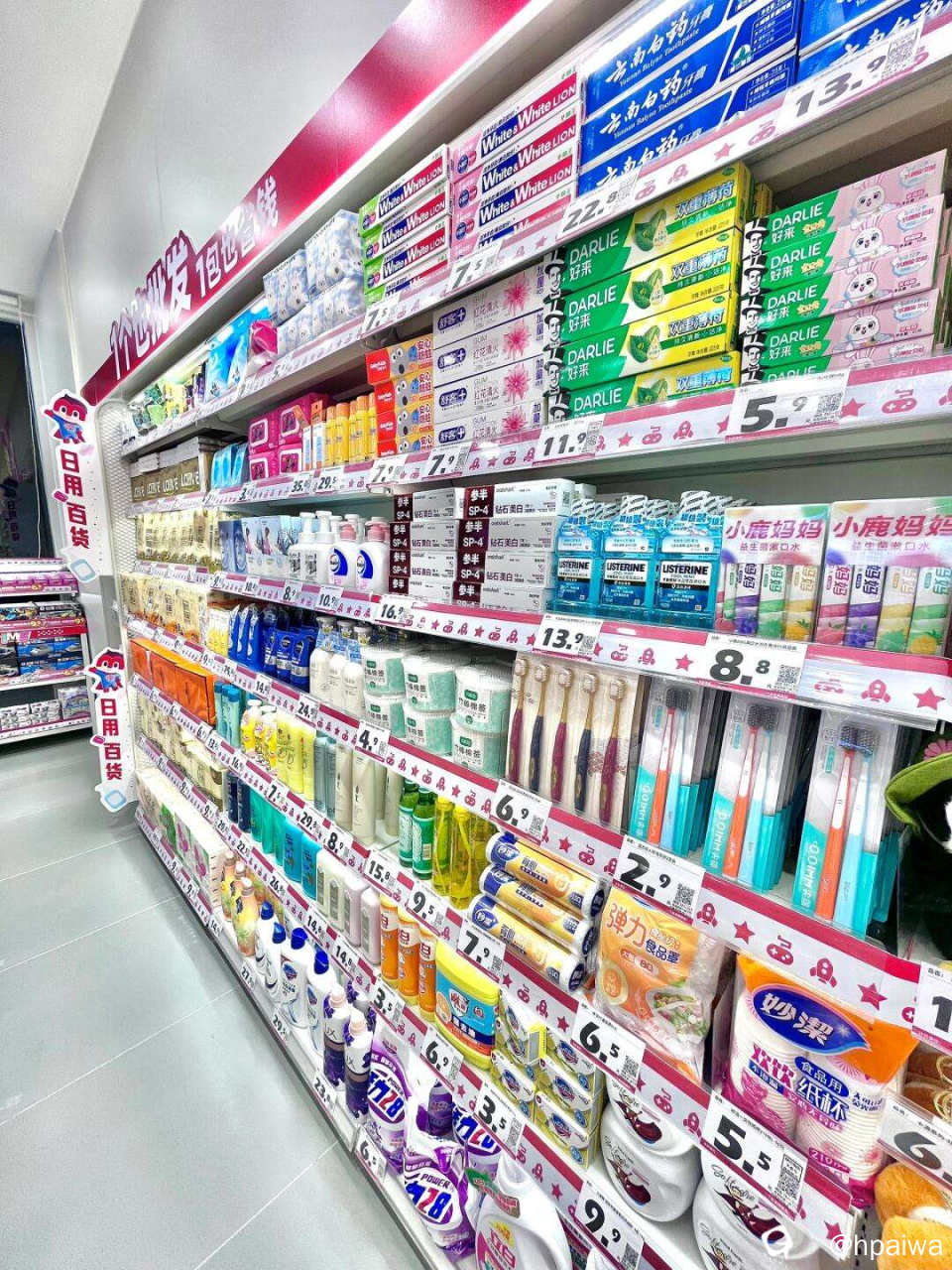 随便看了一下,里面除了零食,还有很多生活用品卖,食用油、米、生粉、纸巾、牙膏牙刷、洗衣粉、酸菜鱼料包、冷冻的水饺汤圆……都有卖,而且大多数都比超市便宜
