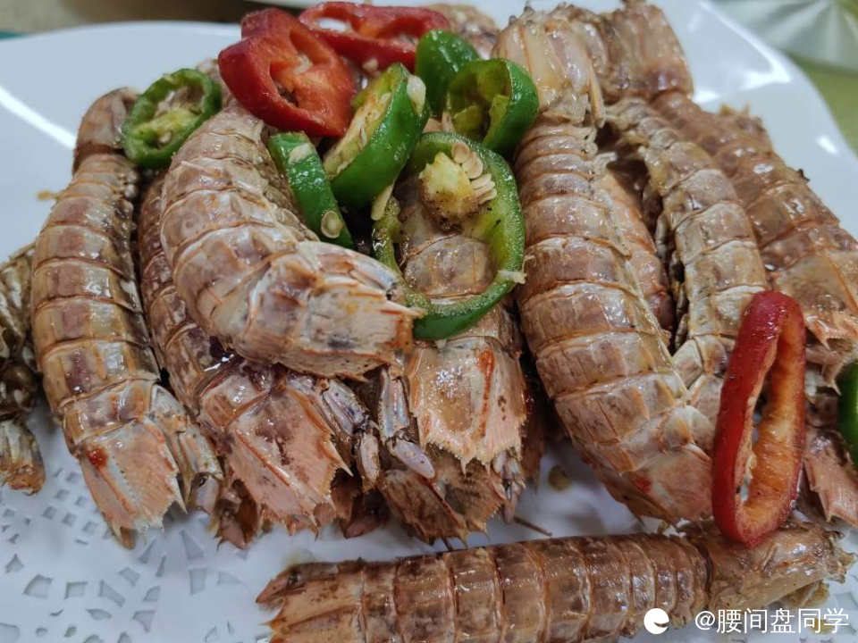 大个皮皮虾,椒盐口味,虾头都嚼得动,一并吞下~
