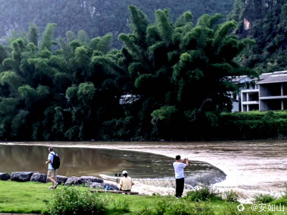 涨水时侯水贡黄水蛮急,可是还看到人在钓鱼仔,我看倒有点担心,岸边的树上有包捞电话,搞不好他们真的在这楷有生意做!