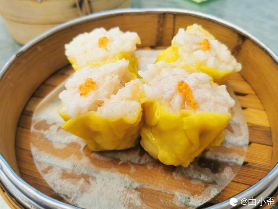 蟹籽鲜虾蒸烧卖,晶莹剔透,包裹紧实。