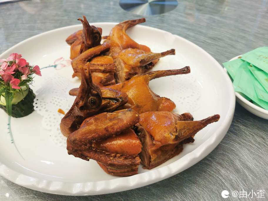 脆皮玻璃乳鸽,一共两只,分成四块,香脆酥口,肉质细腻,不愧为本店招牌鸽。