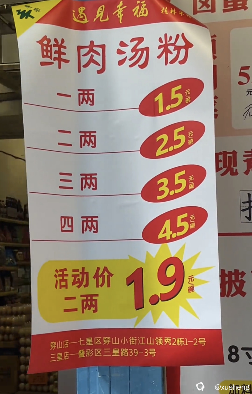 这1.9元二两的米粉我都不会去吃,感觉不要房租都难赚钱了,怀疑质量不保证,不给什么肉还好,给肉多更担心这肉质量来源有问题。个人认为桂林米粉应该在质量上下功夫而不是价格上,全国比5元二两米粉已经算便宜了(肉不好质量差的另说)。