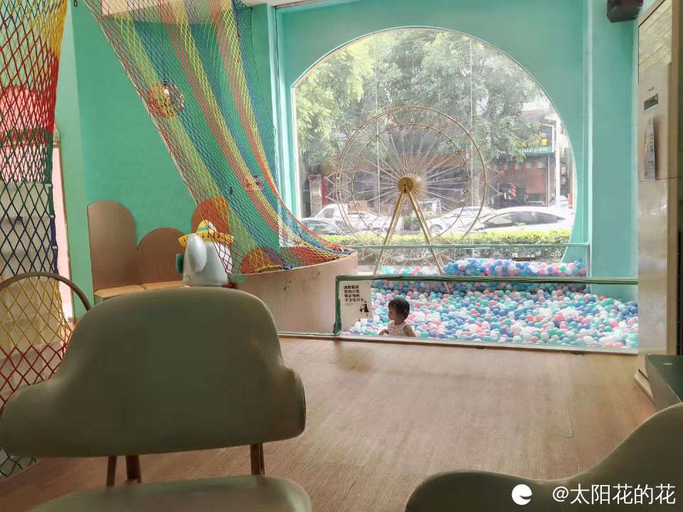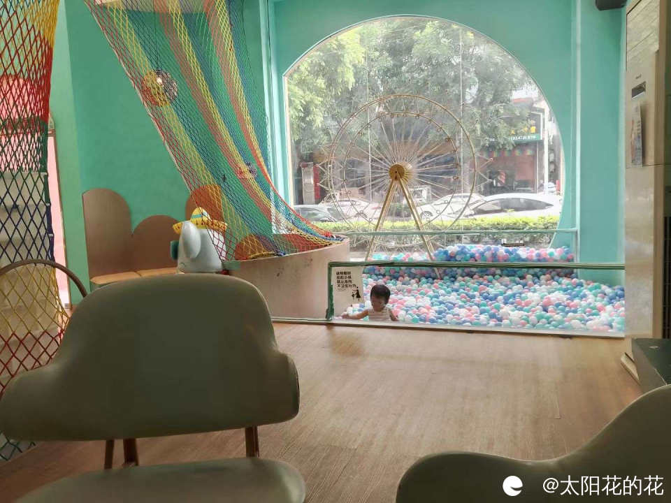 天气太热了,小朋友好喜欢玩彩虹球,带小朋友去面包店玩彩虹球……