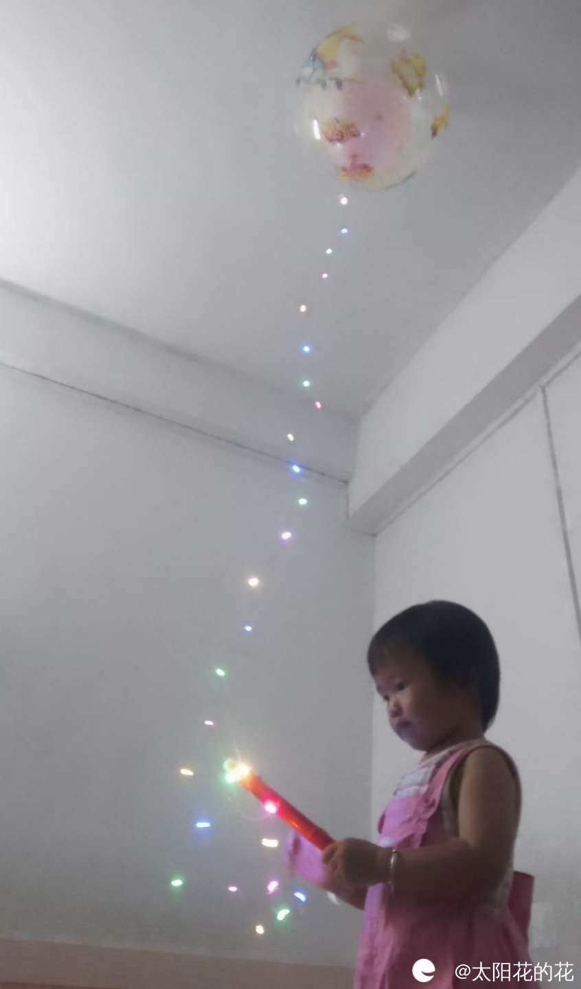 晚上又去逛夜市了,买了饮料和毛巾卷,还给小朋友买了个气球,她好喜欢啊……