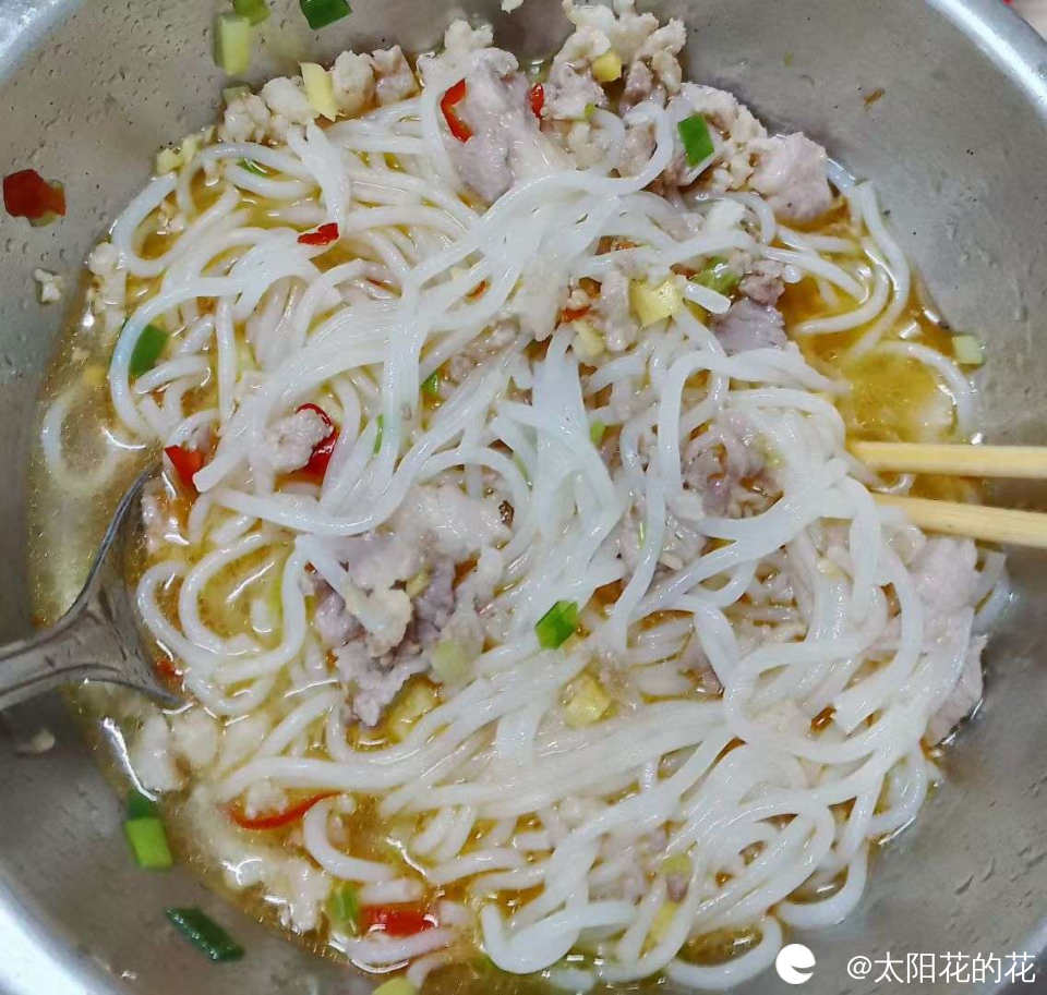 自己在家煮的粉多放点肉,连汤都喝光了……