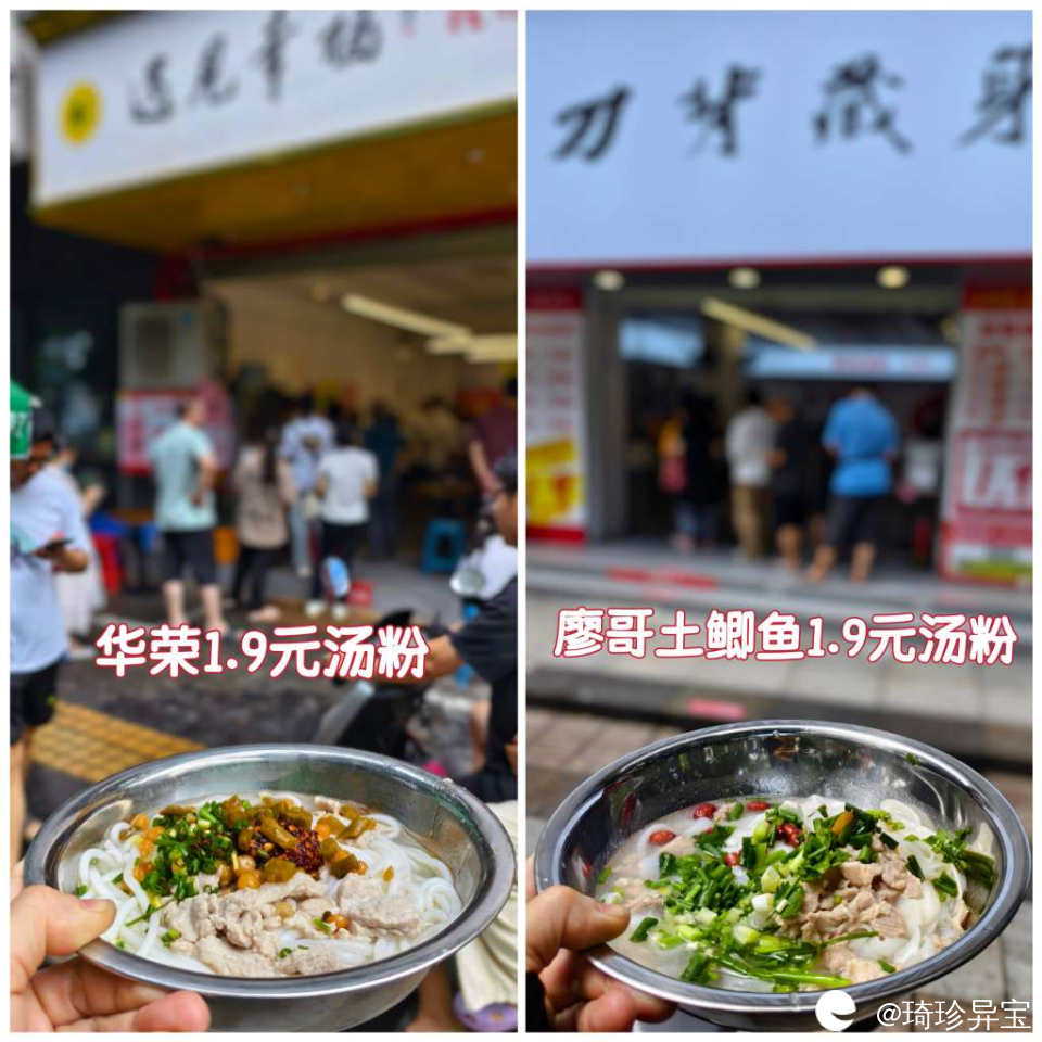 今天专程去试了:华荣·遇见幸福和廖哥土鲫鱼·刀背藏身,分别都吃了一碗汤菜粉,各有千秋吧。