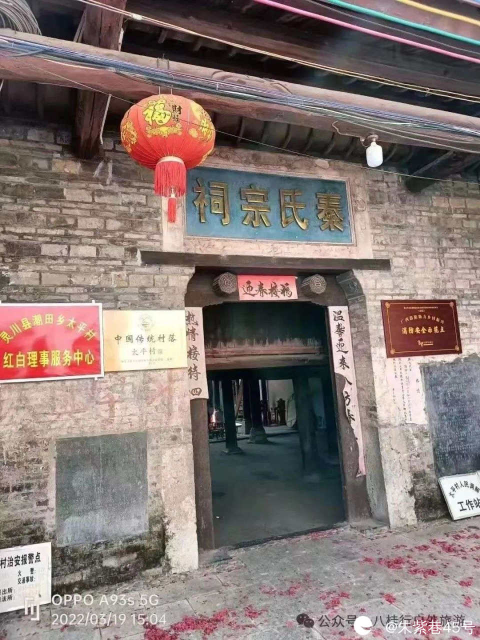 秦氏宗祠修建于清嘉庆十三年(公元1808年),有“众建祠堂碑记”的纪念石碑,刻有“太清嘉庆十三年戊辰岁孟夏月”字样,算来已有200多年历史。古戏台上演绎着,太平古村的悠久故事和历史沧桑。古戏台一直沿用至今每逢红白事都还在这里摆酒席。
