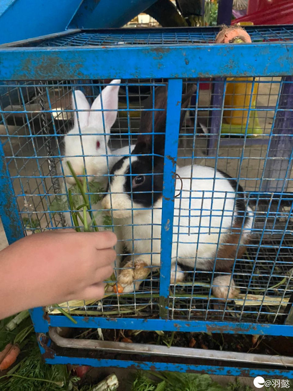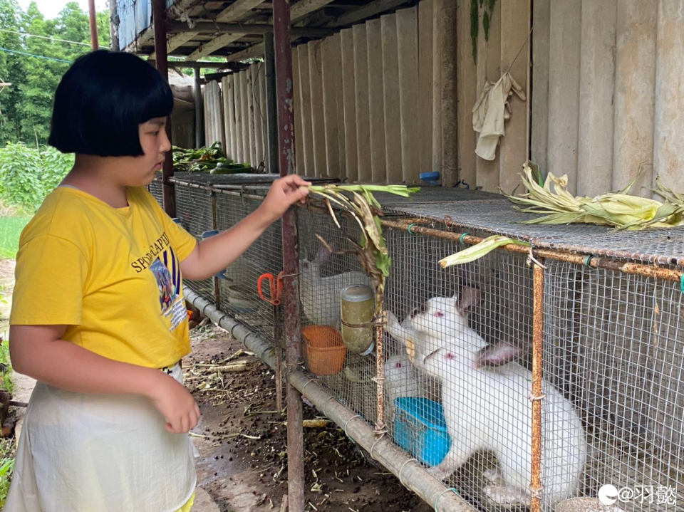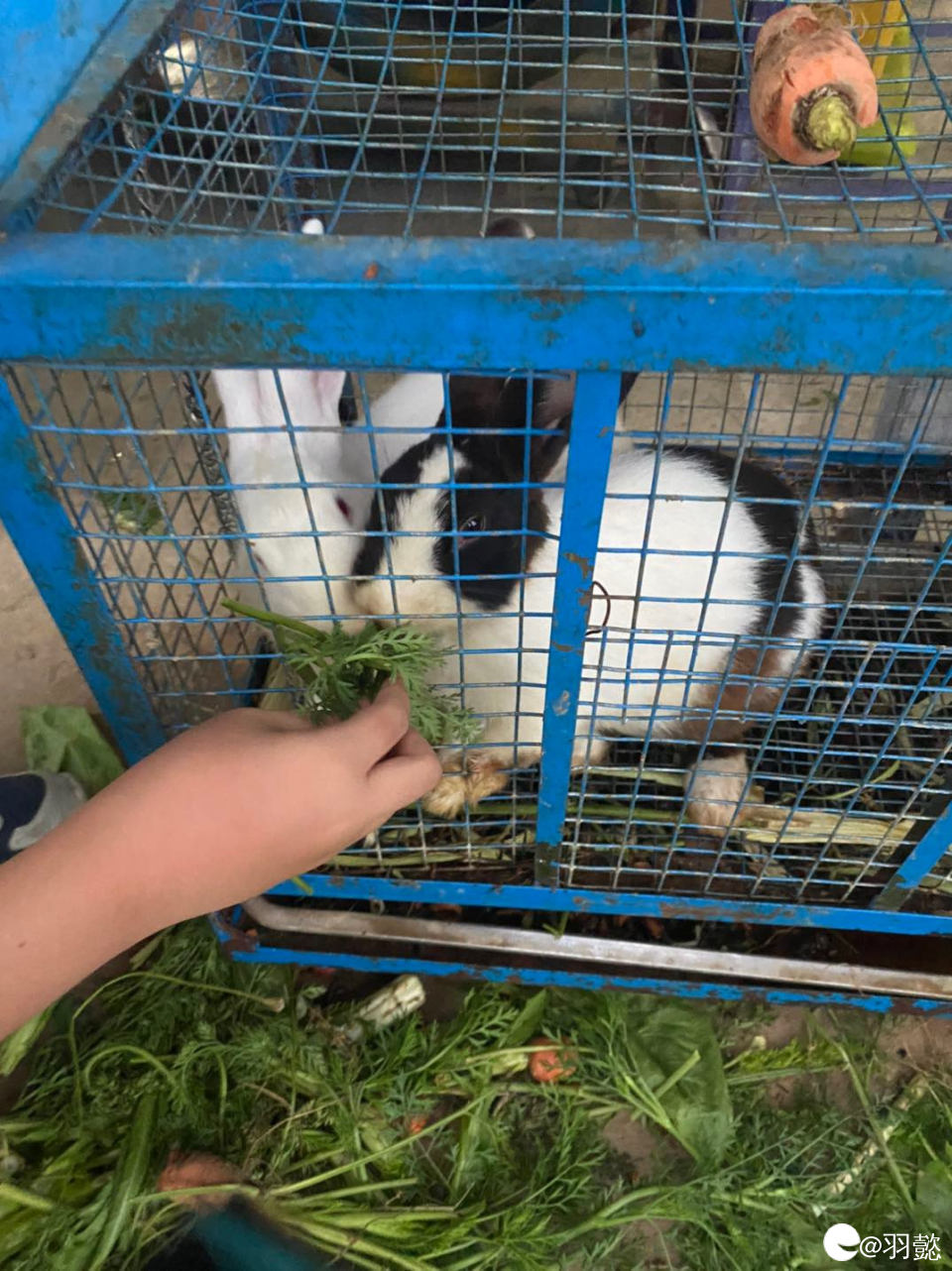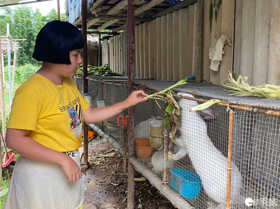 喂兔子吃青菜的娃
