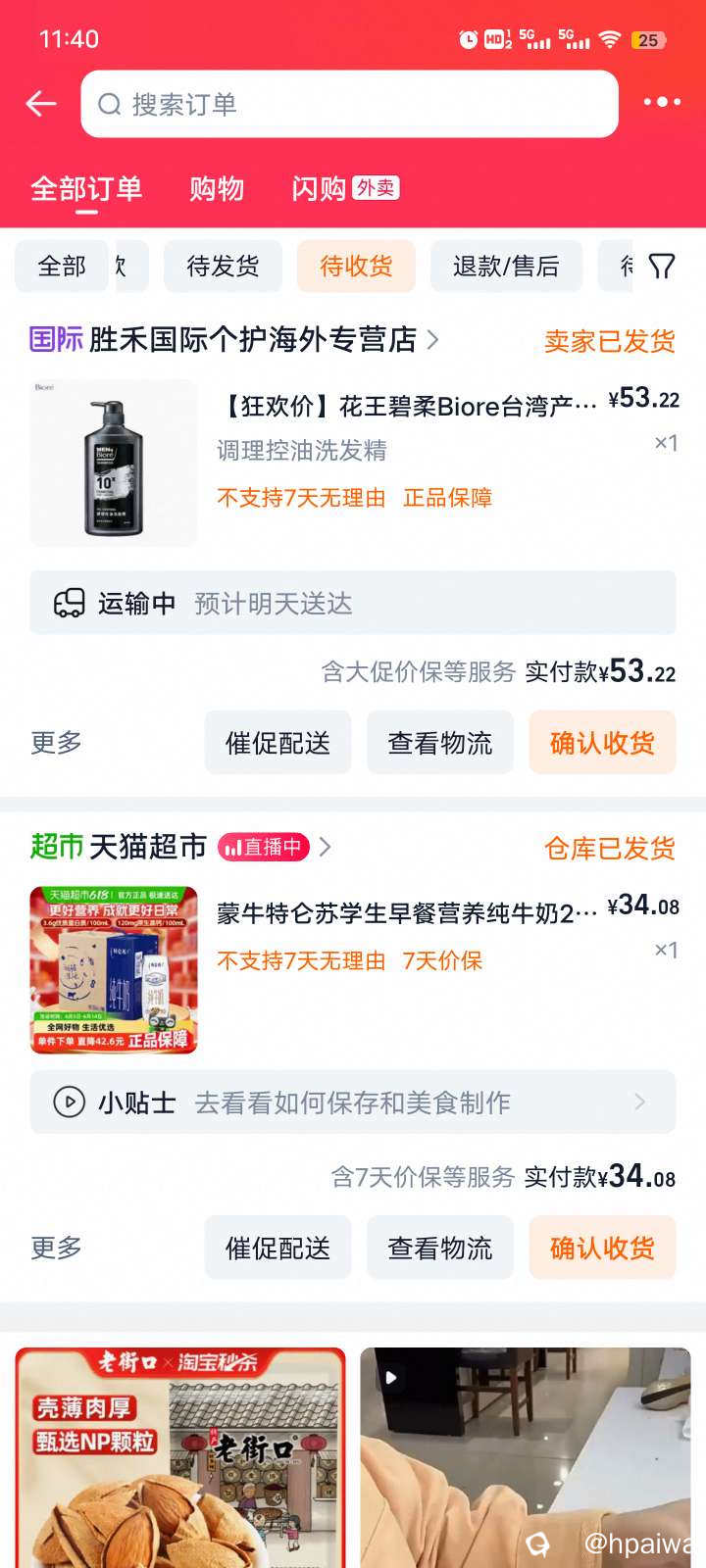 我就买了一瓶洗发水和一箱牛奶,还不是在惊东买的,在掏宝买的。