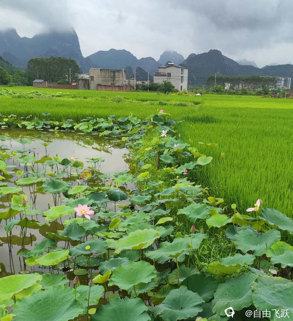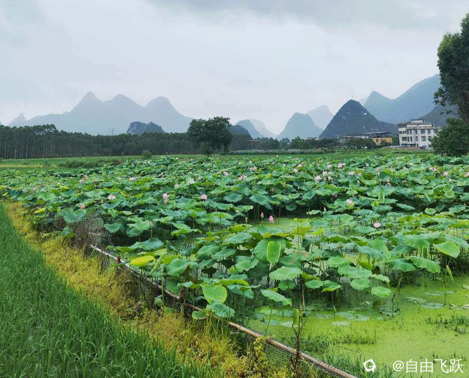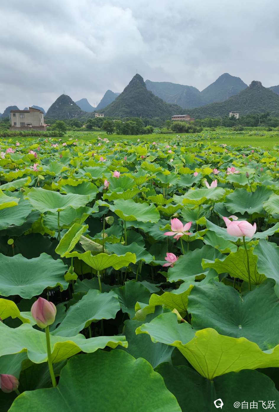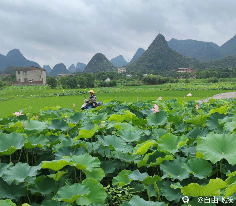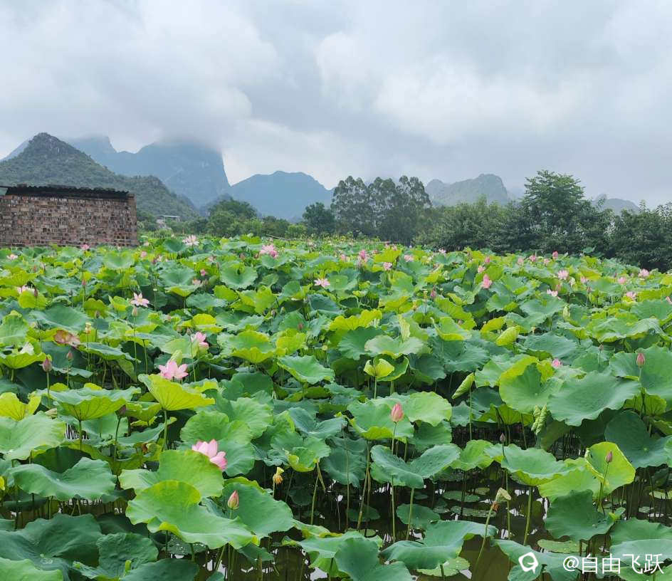 去年雨季我也来过汤家村赏花,当时游人寥寥无几,只有两个钓鱼佬一边一个在荷塘旁大声聊天,讲些哪子用几百万讨越南老婆的事情,听得让人好笑,虽然聒噪,也不影响赏花的心情,因为荷花小村太美了。